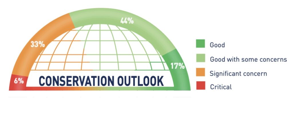 Le rapport souligne que 61 % des sites présentent aujourd’hui des perspectives de conservation favorables ou plutôt favorables. À l’inverse, 6 % des sites sont jugés critiques et plus d’un quart font face à des menaces croissantes.